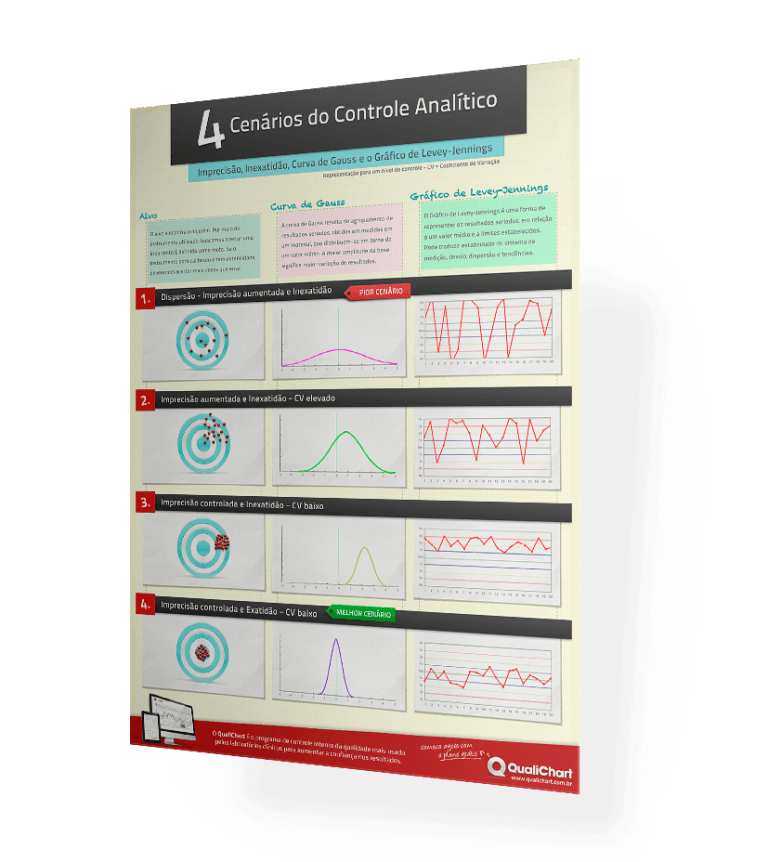 Apresentamos aqui quatro cenários em que se correlacionam os três elementos: o alvo, a curva de Gauss e o gráfico de controle, ou gráfico de Levey-Jennings